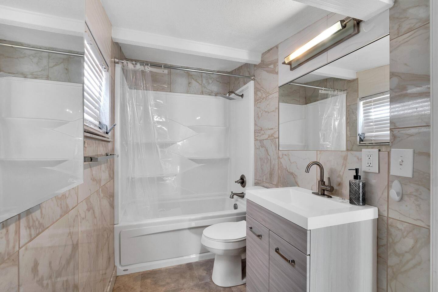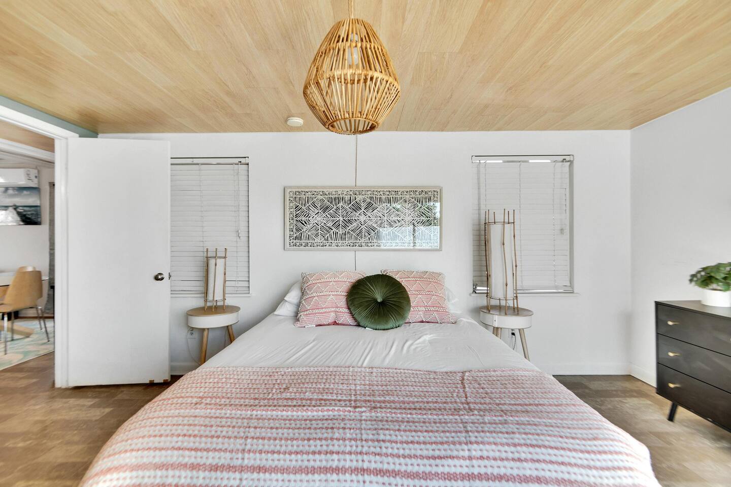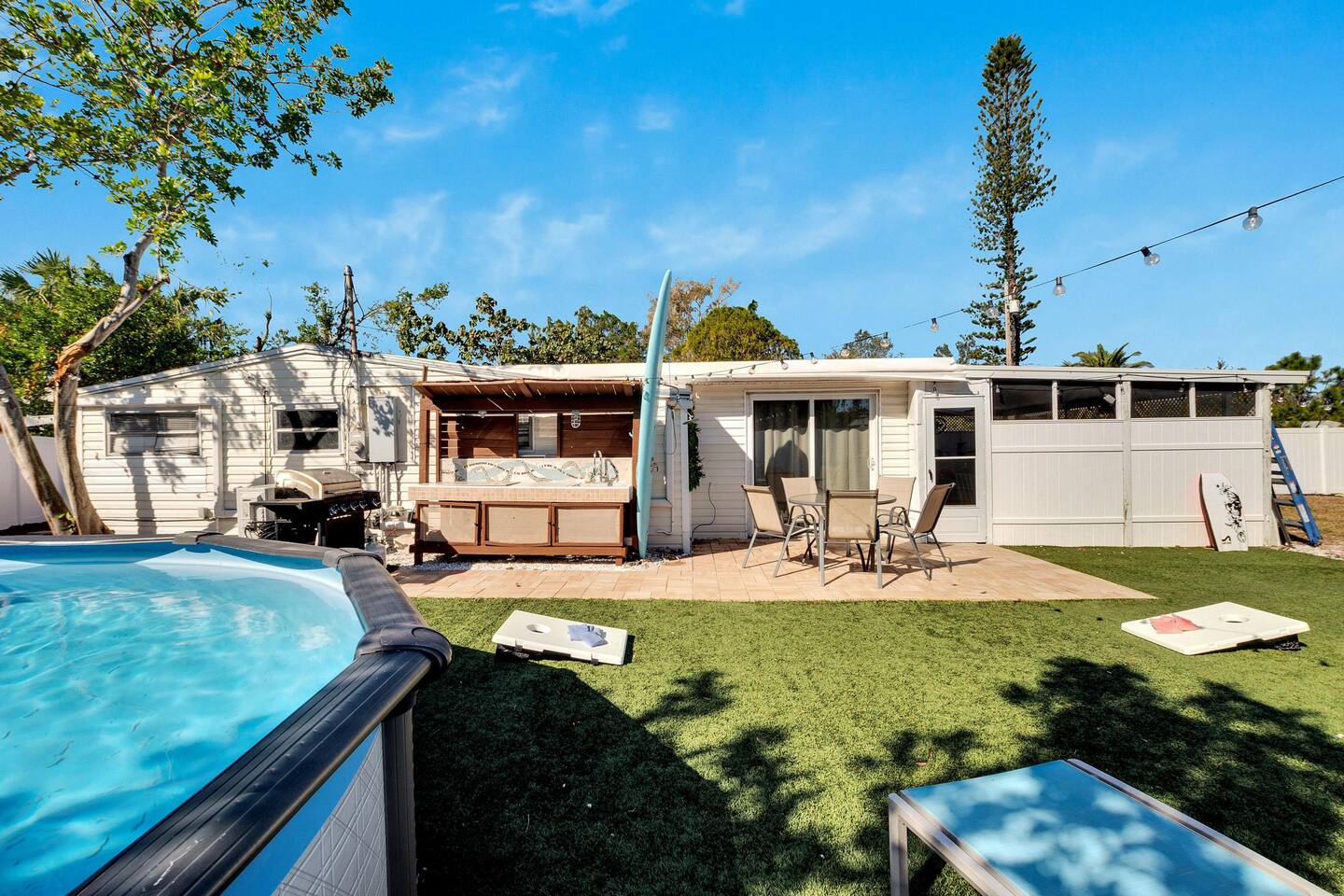 Your Oasis Retreat will include amenities such as: Private Pool, Hot Tub, Outdoor Bar, Outdoor furniture, Smart TV's, fully equipped kitchen, washer, dryer, and High Speed Internet. Your host has paid attention to every detail of this home to create a great guest experience. Your group will find ample space for dining, an indoor and outdoor dining table with seating for up to eight guests. The fully equipped kitchen includes, coffee maker, refrigerator, oven, stove, silverware, utensils and everything you’ll need to cook and prepare meals for your friends and family. The living room features a smart TV with your favorite streaming services available. A queen-sized bed in the master bedroom with private bathroom, desk, and Smart TV. A twin sized trundle bed in the second bedroom with private bathroom, desk, and smart TV. The relaxing outdoor area creates a Zen mood with its modern decor and nature environment. Your group can dine and relax with a tropical view in the privacy of this beautiful home. Bed Sizes: Bedroom #1 - Queen Sized Bed (Sleeps two) Bedroom #2 - Twin Sized Trundle Bed (Sleeps two) Living Room - Queen Sized Air Mattress (Sleeps two) Sleeper Sofa (Sleeps two)