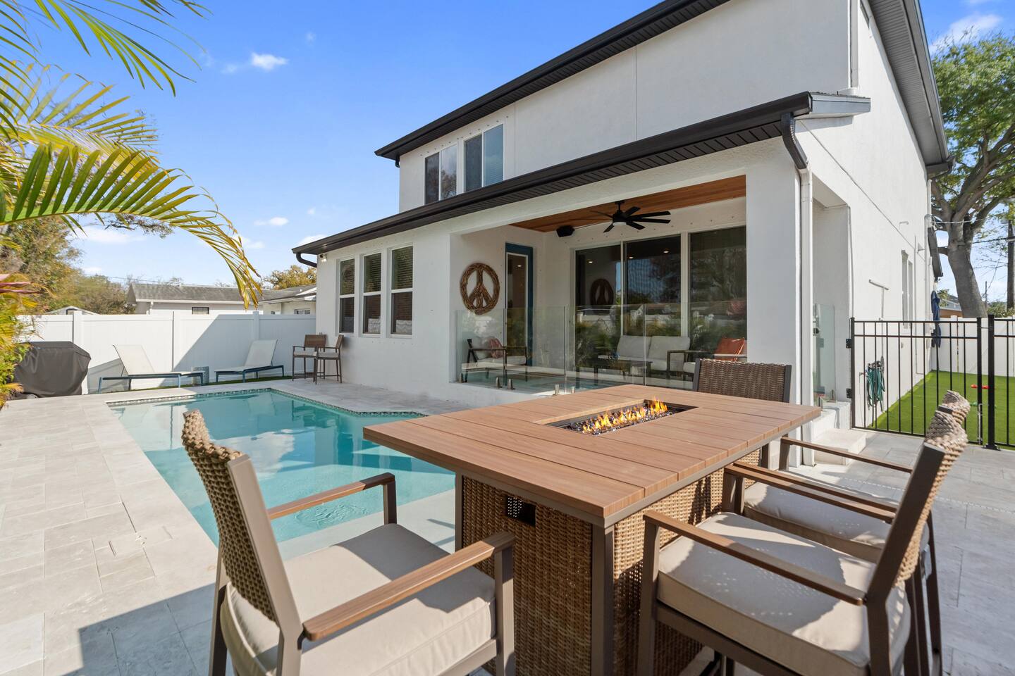 Newly Built Home! Welcome to your dream getaway! Our spacious 4-bedroom pool home offers the perfect retreat for family vacations, group getaways, or anyone seeking a tranquil poolside escape. Explore the heart of Tampa or visit local shops and restaurants. Just a short drive to a bunch of fan-favorite attractions! Nearby Attractions: Raymond James Stadium: 5 mins George Steinbrenner Field: 5 mins Midtown(shops & restaurants): 5 mins Hyde Park: 10 mins Tampa Riverwalk: 15 minutes and more!